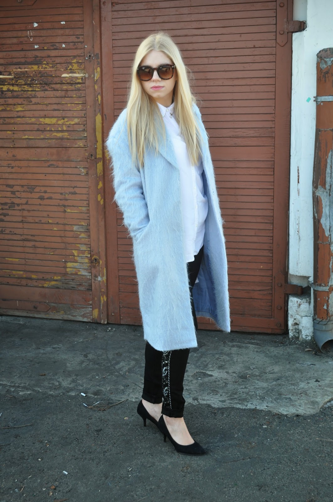 Wykonany jest z 45% akrylu, 26% wełny, 16% moheru i 13 % nylonu. Chociaż jest bardzo cienki, jest tak samo ciepły jak moja zimowa kurtka. A może nawet bardziej? Jedynym jego minusem jest to, że bardzo opyla ciemne rzeczy, co widać na moich spodniach. Jeśli szukacie płaszcza, lećcie do sklepu, bo warto!