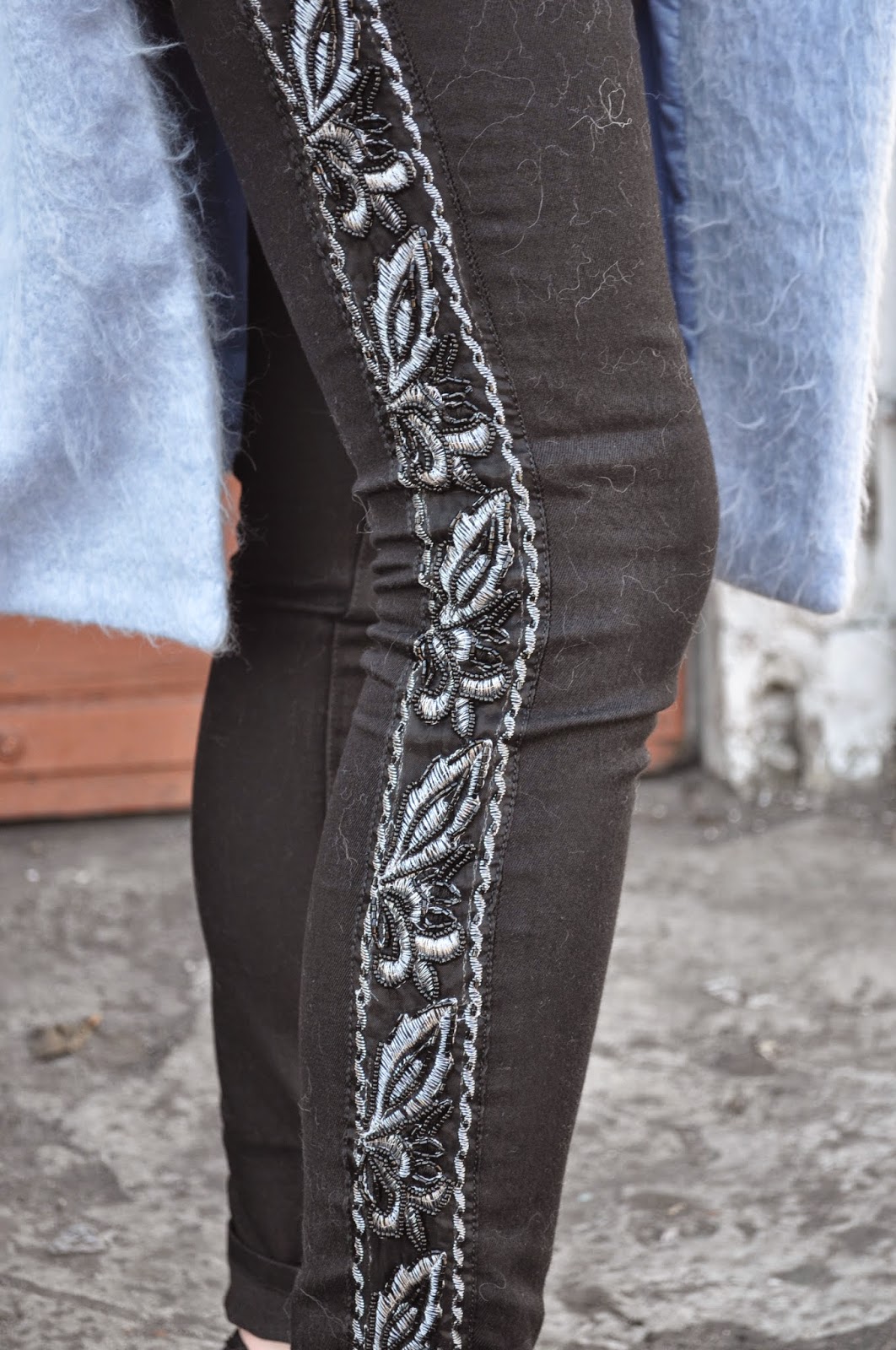 Kolejną rzeczą, którą udało mi się kupić w promocji są czarne spodnie z wysokim stanem, ozdobione pięknym pasem z boku nogawki. Były przecenione z ok 150 zł na 40 zł.