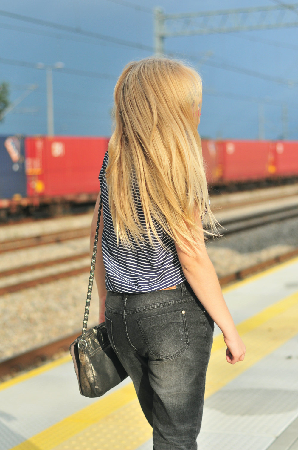 Koszulę w paski znalazłam w lumpeksie, jeszcze przed wakacjami, za 1 zł. Muszę przyznać, że przez około 3 miesiące, czekała na swoją kolej. Podobała mi się cały czas, ale jakoś nie po drodze było ją założyć. Tak czy siak, doczekała się.