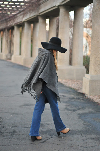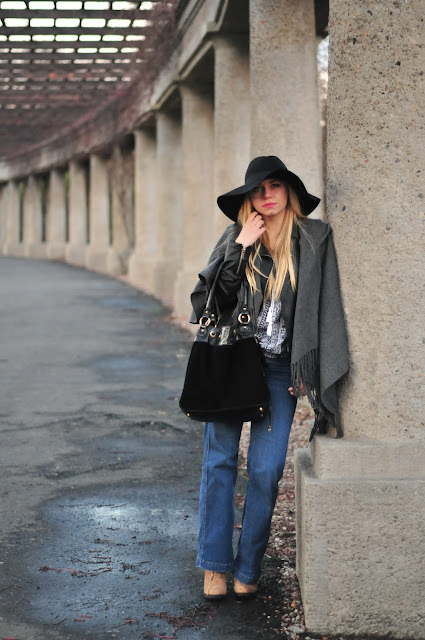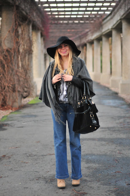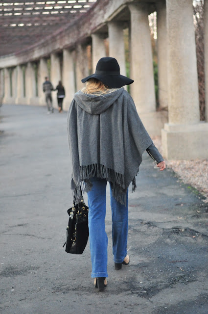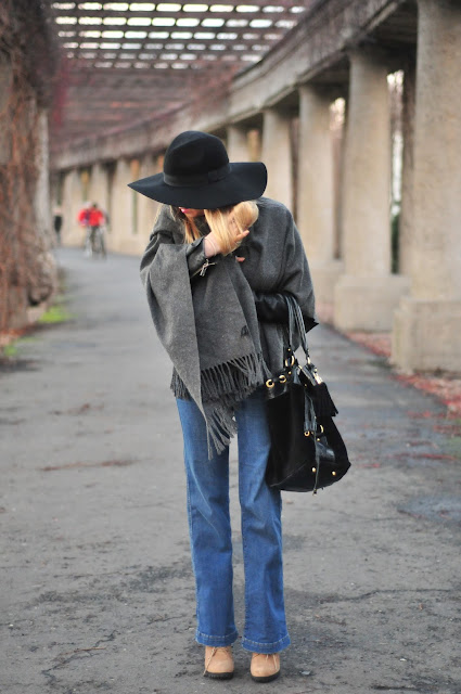 Jeans- H&M (second hand) || Top- Atmosphere (second hand) || Poncho- Second hand || Jacket- Stradivarius || Boots- Pantofelek24 || Bag- Second hand || Hat-H&M (Ciuchtesy)