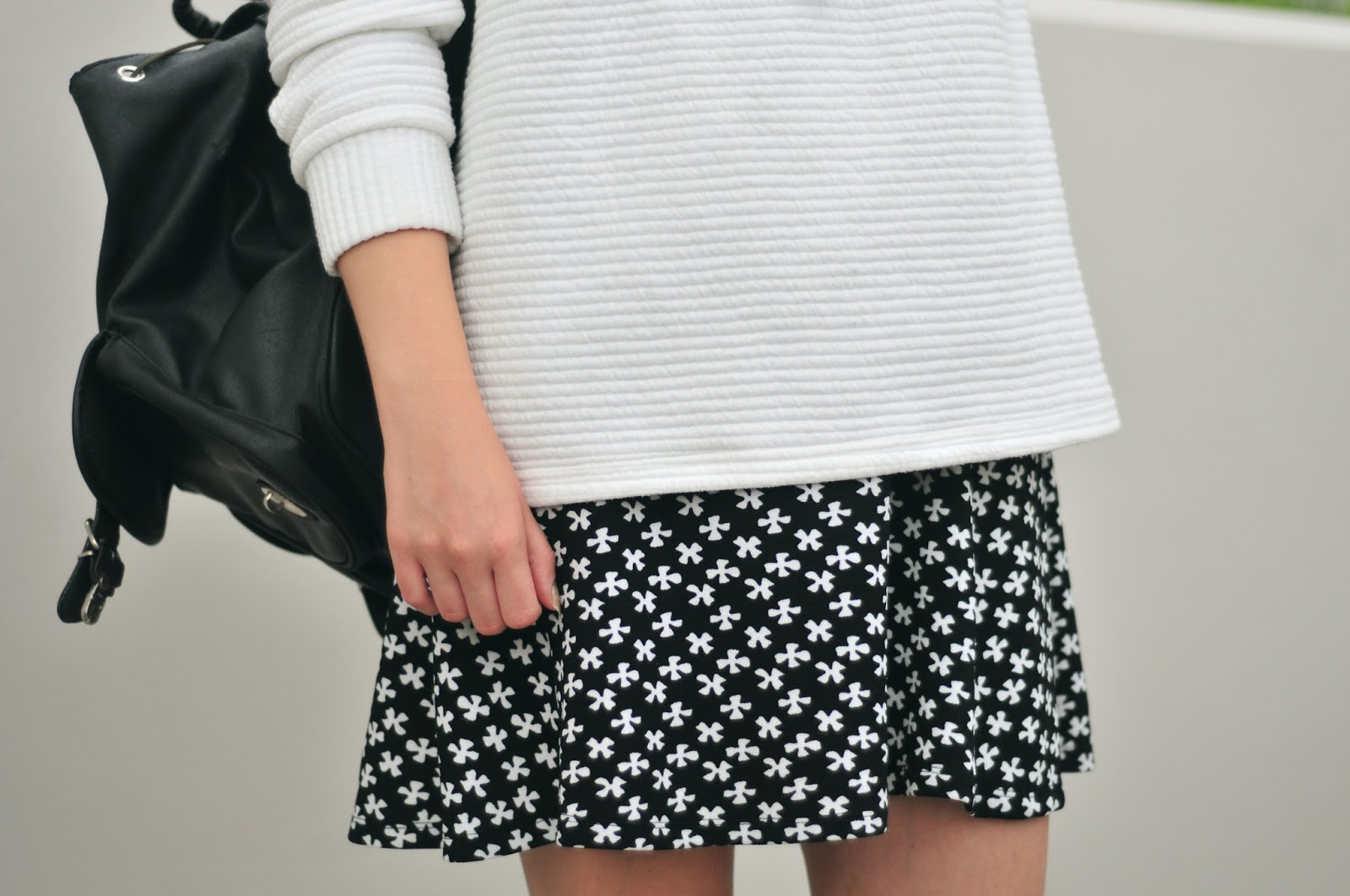 Dziś kolejny post z sukienką z Ciucholandii. Początkowo chciałam pokazać ją w eleganckim wydaniu, nawet zrobiłam zdjęcia! (I to jakieś dwa tygodnie temu.) Oglądając je, stwierdziłam, że zupełnie tego nie czuję. Trampki jednak są bardziej 'moje'. Połączone z sukienką w kwiatki i oldschoolowym plecakiem, tworzą dziewczęcy, luźny zestaw- w stylu lat 90. Lubicie takie zestawienia, czy wolicie stawiać na klasykę? :)
