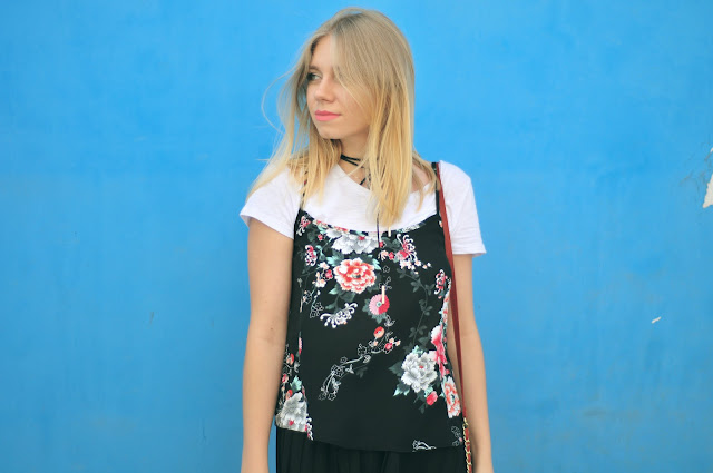 T-shirt- Reserved || Top- New Look (second hand) || Skirt- Vinatge (second hand) || Sneakers- H&M || Bag- Atmosphere (second hand) || Choker- Aliexpress
