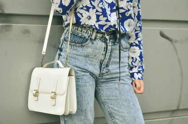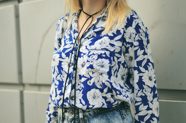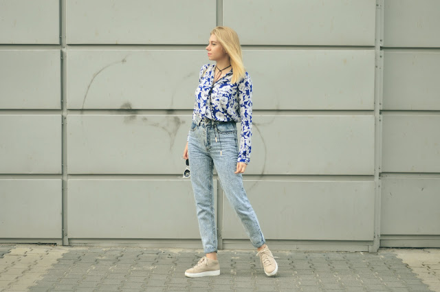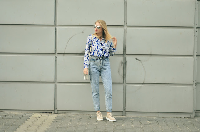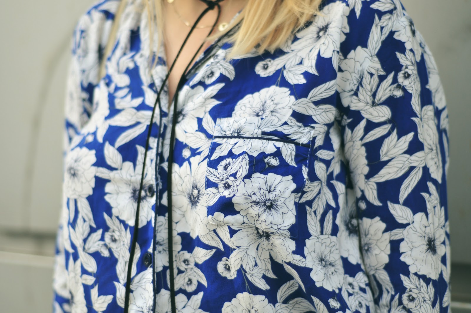 Piżamowej mody ciąg dalszy! Tym razem padło na koszulę, którą kupiłam kilka miesięcy temu w lumpeksie. Chociaż ma krój typowej piżamy, wyraźne kolory nadają jej bardziej codziennego wyglądu. Nie wszystkie bluzki tego typu mi się podobają, Wam zapewne też nie. W second handzie mierzyłam takich wiele. Niestety, w większości czułam się jak w piżamie - miały jakieś blade kolory, czy dziwny krój. "Łóżkową" modę lubię, ale dopiero wtedy, kiedy nie czuję się jakbym zapomniała się przebrać. Ta koszula w moje kryteria wpasowała się idealnie, a na dodatek jest mega wygodna! Będzie fajnie wyglądała nie tylko do jeansów, bo idealnie sprawdzi się również ze spódnicą, albo w bardziej eleganckim połączeniu - w towarzystwie butów na obcasie.