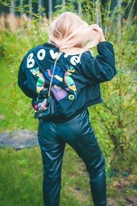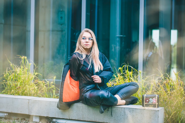 Wszelkie napisy i aplikacje na plecach podbiły świat mody w sezonie wiosna/lato. Dziś chcę Wam pokazać kurtkę w tym stylu, jednak przeznaczoną na chłodniejsze dni - jest mega ciepła! Wielką puchówkę najłatwiej będzie zestawić z obcisłymi spodniami i bluzą. Ja postawiłam jednak na luźniejsze skórzane joggery, oversizowy przeźroczysty top oraz ozdobną torebkę. Dzięki temu zyskałam sportowy look z nutką elegancji. Jeśli jesteście odważne i nie boicie się zimna, spróbujcie zestawić taką kurtkę ze spódnicą z wysokim stanem, oraz kozakami za kolano. Wtedy na pewno nie przejdziecie na ulicy niezauważone.